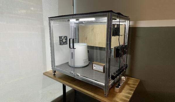 To figure out what was causing this unexpected increase in fine dust, we decided to replicate the scenario by placing a humidifier and an Awair 2nd Edition inside our “test chamber”--essentially, a large glass box we use for our Awair experiments. We decided to use a generic brand warm mist humidifier, since our users reported this issue across a variety of different brands. The humidifier was aired out for 24 hours to allow for any VOC off-gassing.